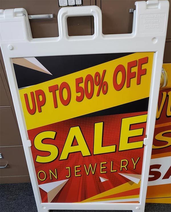 & J Printing presents custom A-frame signs that will capture the attention of passersby and drive foot traffic to your business. These signs are perfect for promoting sales, announcing grand openings, or creating awareness about new products or services among customers.